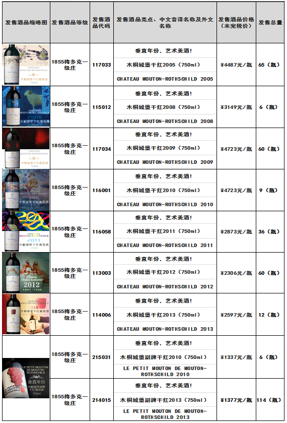 木桐城堡干红2005(750ml)、达玛雅克城堡干红2012(750ml)等酒品发售公告