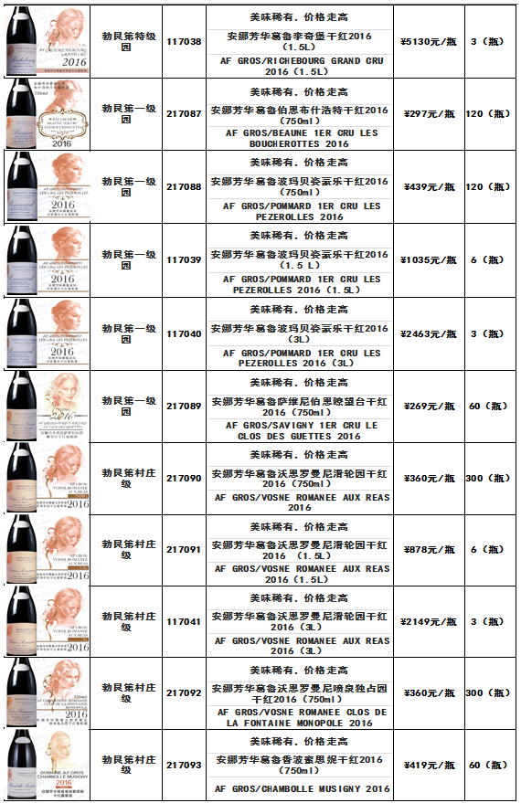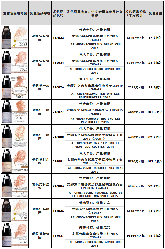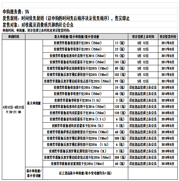 安娜芳华葛鲁依瑟索干红2015(750ml)、安娜芳华葛鲁依瑟索干红2016(750ml)等酒品发售公告