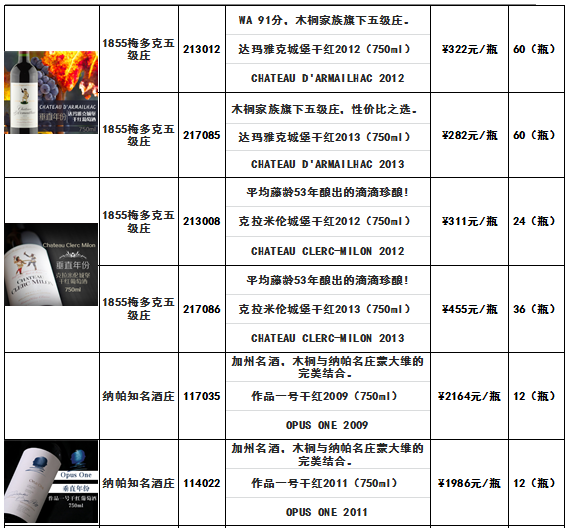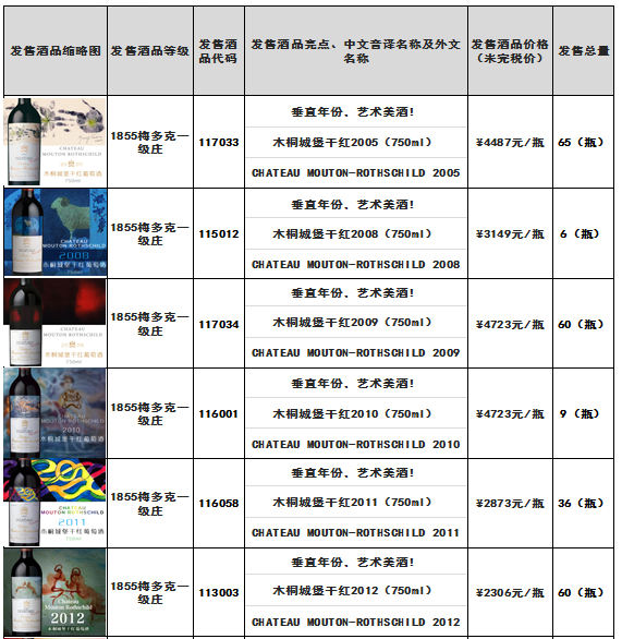 关于木桐城堡干红2005(750ml)-酒品代码117033、达玛雅克城堡干红2012(750ml)-酒品代码213012等酒品结束发售的通知