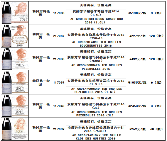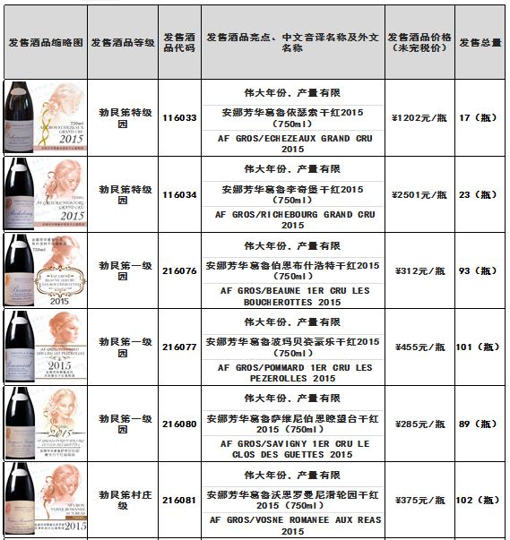 关于安娜芳华葛鲁依瑟索干红2015(750ml)-酒品代码116033、安娜芳华葛鲁依瑟索干红2016(750ml)-酒品代码117036等酒品结束发售的通知