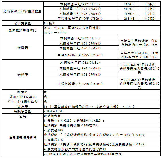 木桐城堡干红1982(1.5L)、木桐城堡干红1994(750ml)等酒品可提货的通知