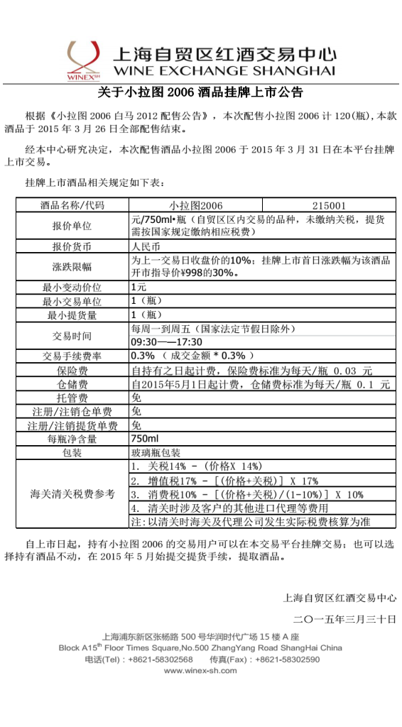 【文章来源】:上海自贸区红酒交易中心 【作者】:上海自贸区红酒交易中心 【日期】:2015-03-30