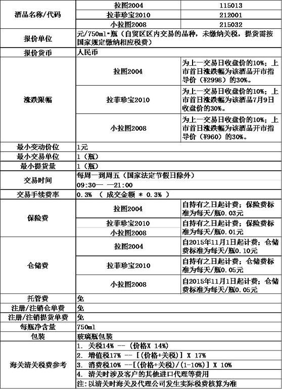 自上市日起,持有拉图2004拉菲珍宝2010小拉图2008的交易用户可以在本交易平台挂牌交易;也可以选择持有酒品不动,提取酒品,其中本次配售酒品拉菲珍宝2010在2015年7月10日挂牌上市日起可提交提货手续,提取酒品;拉图2004小拉图2008在2015年11月始提交提货手续,提取酒品。