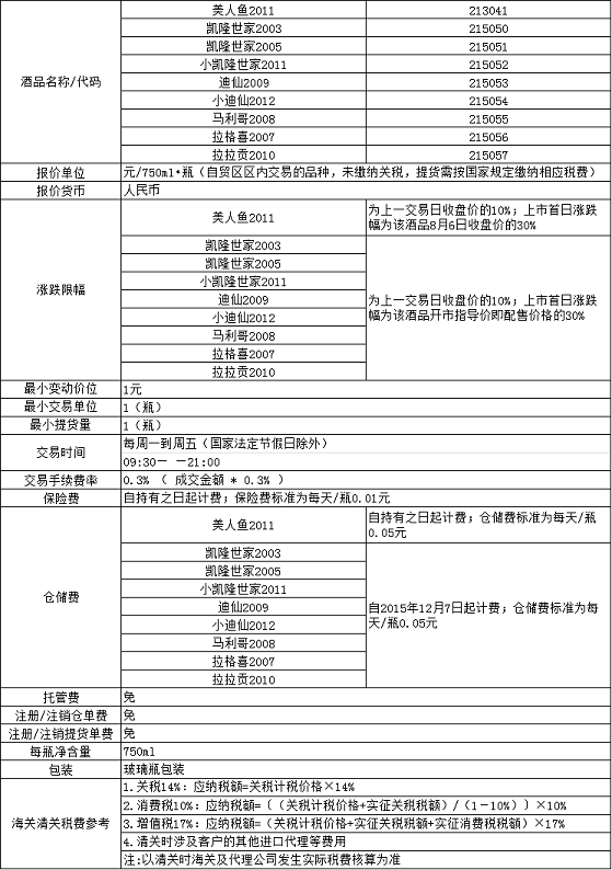 挂牌上市酒品相关规定如下表:
