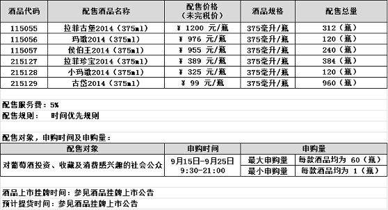 本配售公告的目的仅为向公众提供有关本次配售的基本情况,配售公告全文同时刊载在上海自贸区红酒交易中心官方网站[www.winex-sh.com]。