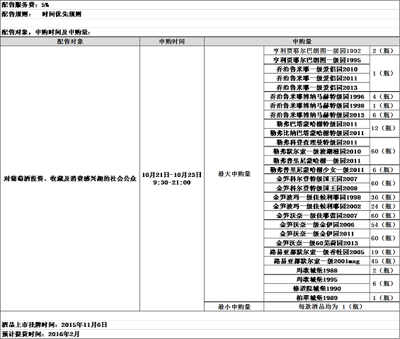 本配售公告的目的仅为向公众提供有关本次配售的基本情况,配售公告全文同时刊载在上海自贸区红酒交易中心官方网站[www.winex-sh.com]。