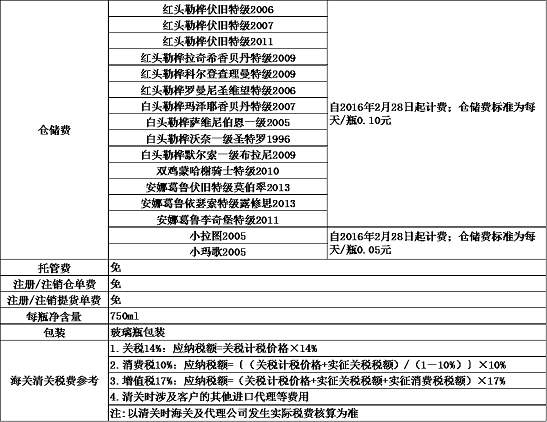 红头勒桦伏旧特级2006双鸡蒙哈榭骑士特级2010安娜葛鲁伏旧特级莫伯翠2013小拉图2005小玛歌2005等酒品挂牌上市公告