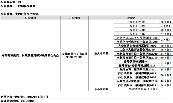 本配售公告的目的仅为向公众提供有关本次配售的基本情况,配售公告全文同时刊载在上海自贸区红酒交易中心官方网站[www.winex-sh.com]。