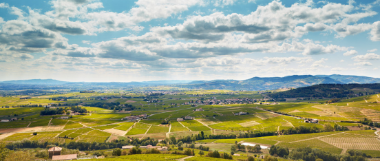 博若莱产区位于法国中东部,属于典型的大陆性气候,夏季温暖,秋季干燥,有利于佳美葡萄的成熟。北部多为山坡地貌,土壤主要是花岗岩和硅土,适合酿造口感浓郁、具有深度的葡萄酒。南部则是一大片平原,土壤以黏土为主,主要用于酿造口味清爽的