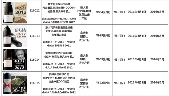 奥纳亚干红2012(750ml)索拉雅干红2008(750ml)嘉雅巴巴莱斯科干红2012(750ml)等酒品发售公告 上海自贸区红酒交易中心 发售声明 本发售公告的目的仅为向公众提供有关本次发...
