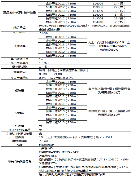 金钟干红2011(750ml)金钟干红2012(750ml)柏菲干红2011(750ml)柏菲干红2012(750ml)等酒品挂牌上市公告