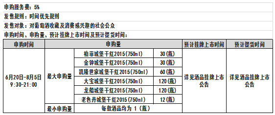 柏菲城堡干红2015(750ml)金钟城堡干红2015(750ml)大宝城堡干红2015(750ml)龙船城堡干红2015(750ml)老色丹城堡干红2015(750ml)等酒品发售公告 上海自...
