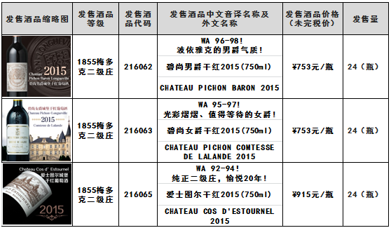 柏菲城堡干红2015(750ml)金钟城堡干红2015(750ml)大宝城堡干红2015(750ml)龙船城堡干红2015(750ml)老色丹城堡干红2015(750ml)等酒品发售公告 上海自...