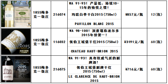 根据《拉菲古堡干红2015(750ml)木桐城堡干红2015(750ml)玛歌城堡干红2015(750ml)侯伯王城堡干红2015(750ml)等酒品发售公告》,本次拉菲古堡干红2015(750ml) -酒品代码:116029木桐城堡干红2015(750ml)-酒品代码:116030等酒品(详见下述列表)均于8月5日21时00分发售结束。