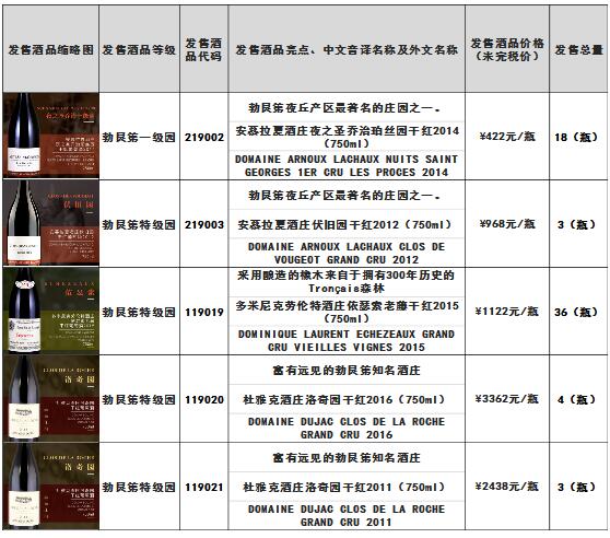 安慕拉夏酒庄夜之圣乔治珀丝园干红2014(750ml)-酒品代码219002、多米尼克劳伦特酒庄依瑟索老藤干红2015(750ml)-酒品代码119019等酒品结束发售的通知