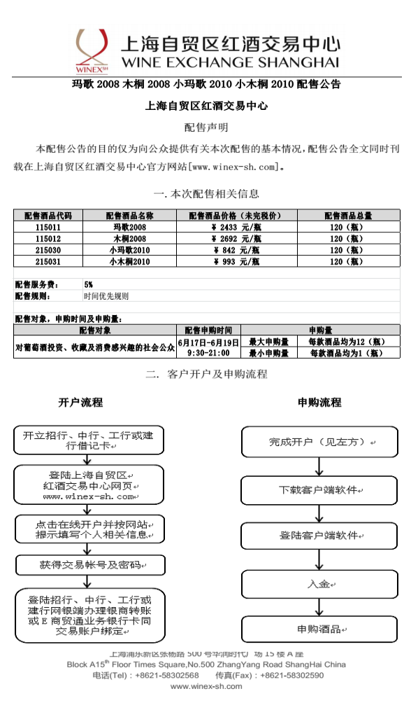 玛歌2008木桐2008小玛歌2010小木桐2010配售公告